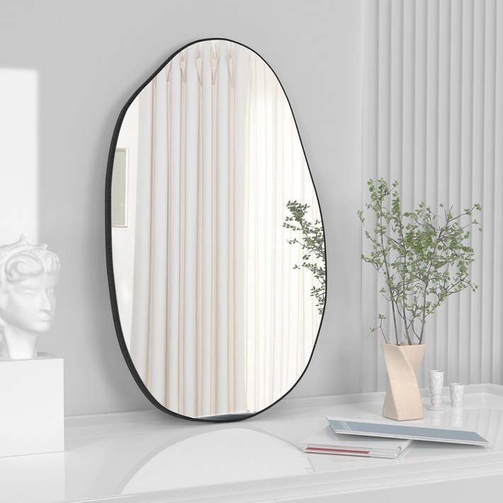 Brendayia비대칭 벽걸이 거울 화장경 침실 탈의실 장식경 블랙850x520mm, 블랙