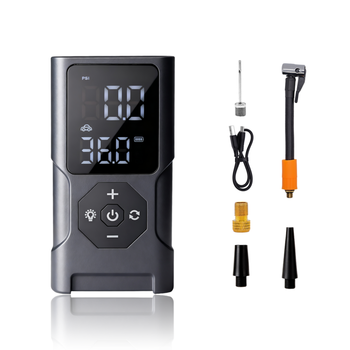 휴대용 무선 공기 주입기 풀세트 LED손전등보조배터리자동차구기류자전거 오토바이 다용도 에어 펌프 , 블랙 , 1세트